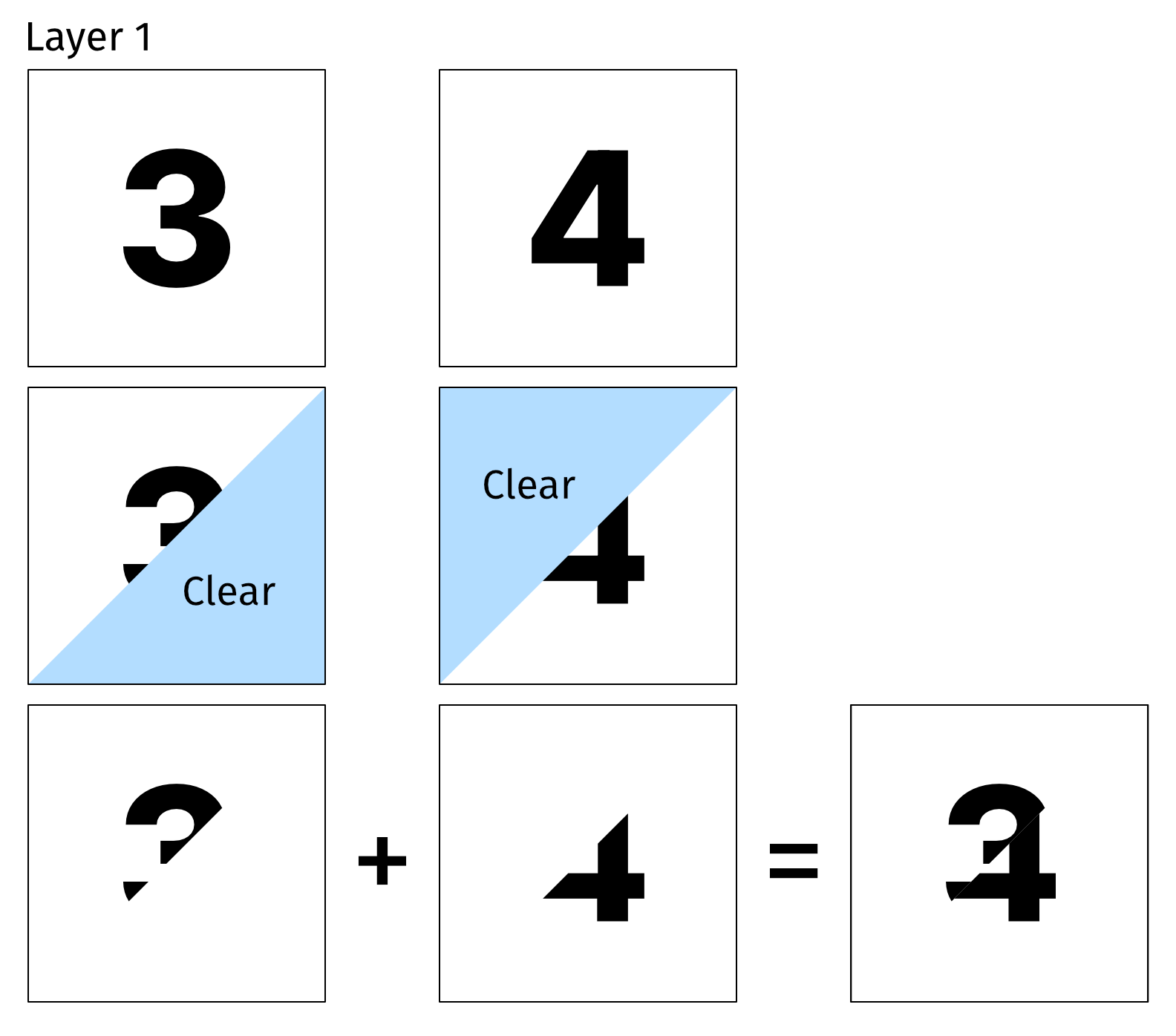 So I went ahead and implemented that, starting simple by masking with a rectangle instead of a polygon. Long story short, that doesn’t work. PebbleOS doesn’t really mix layers together like that, layers are more like a way to organise your code than true layers with compositing. When I erase something while drawing the top layer, it erases anything on screen.